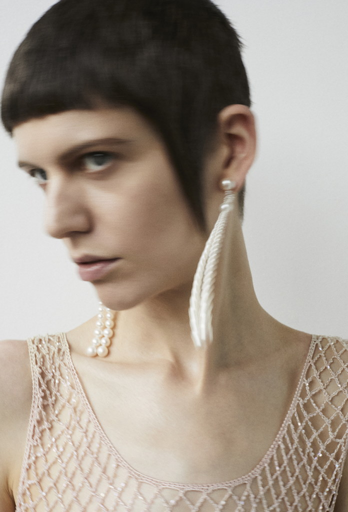 White silk beaded dress Lanvin black leather knee-high Nanette boots Grenson